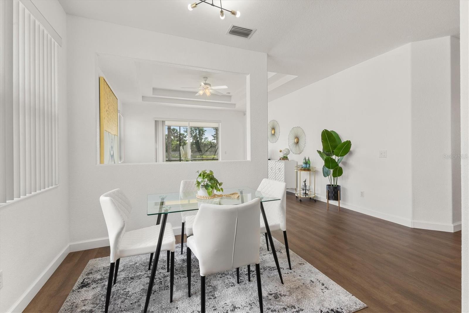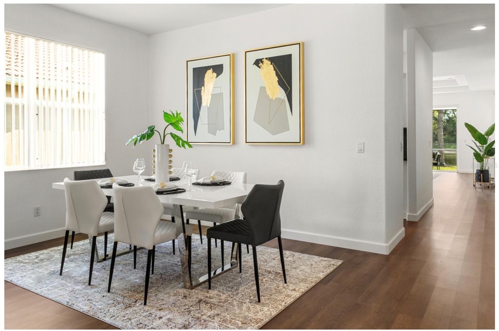 Step inside and be welcomed by the new waterproof luxury vinyl plank (LVP) flooring accented with majestic modern paintings. The open floor plan features a generously sized family room and dining room, providing a modern extra living and entertaining space.