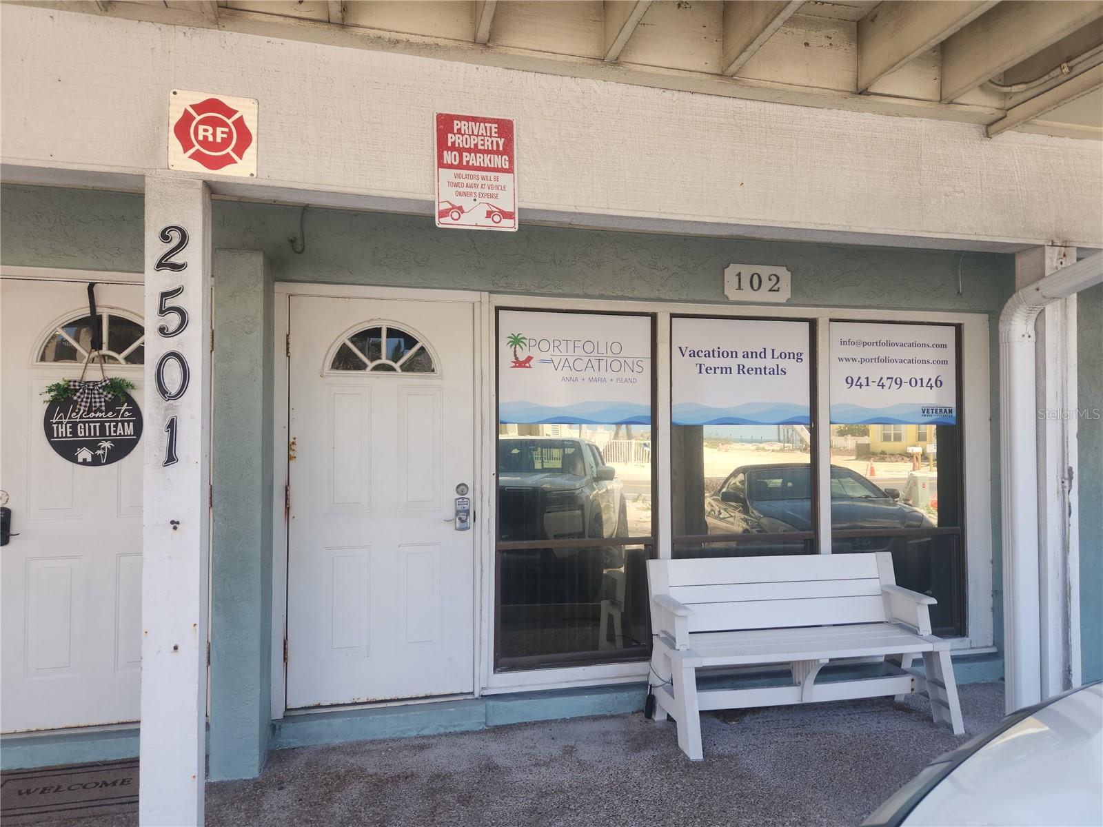 Commercial space for lease on Anna Maria Island. Perfect for an office or small service business. Neighbors on the ground level include a flower shop, real estate office and a hair salon. Upstairs there are 4 residential rental units. 416 square feet with road frontage on Gulf Drive N across the street from the beach. Close to the free island trolley. 2 dedicated parking spaces and street parking available. This property is available for lease or sale.