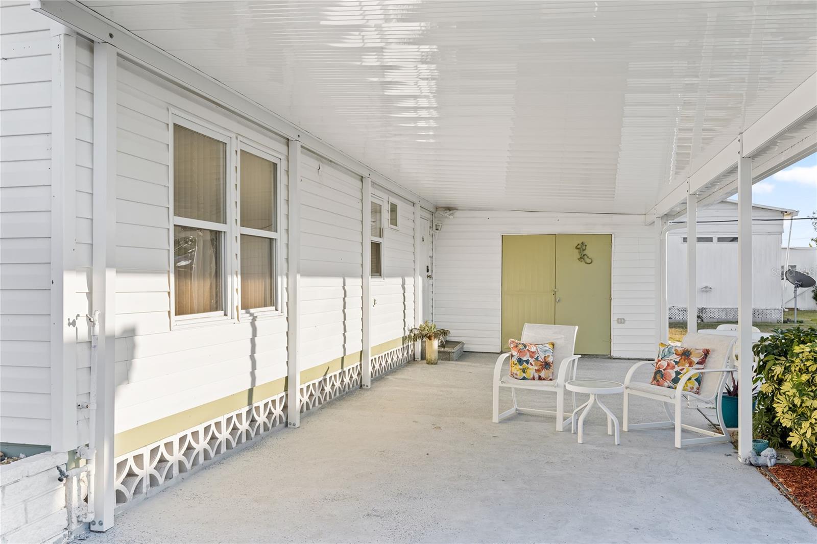 ASK ABOUT OWNER FINANCING! Located in desirable, gated 55+ Leisure Lake Co-Op! New carport May 2025 would fit two cars nicely! Newer windows. Cute, light and bright and move in ready. Sold turn key furnished. Spacious primary bedroom with easy step in shower. Enclosed lanai makes perfect overflow space for company with en suite bath & walk in shower. Stackable washer & dryer stay. Two storage sheds for extra storage. Community pool is salt water & heated. Amenities include pickleball, tennis court & shuffle board, fitness center, clubhouse, laundry & library. Active & golf cart friendly community with year round activities. Located on a quiet street with no thru traffic. Free shuttle to the Palmetto bus station & about a mile away to the 7-11. (Certain streets in Leisure Lake allow pets but not Peace Manor). Close to 275, 41 & 301, Walmart is under 3 miles away & within an hour of 3 major airports: Tampa International, Clearwater/St Pete & Bradenton/Sarasota. LOW LOW HOA $212/mo includes mowing 1x week, water, trash, recycling & sewer.