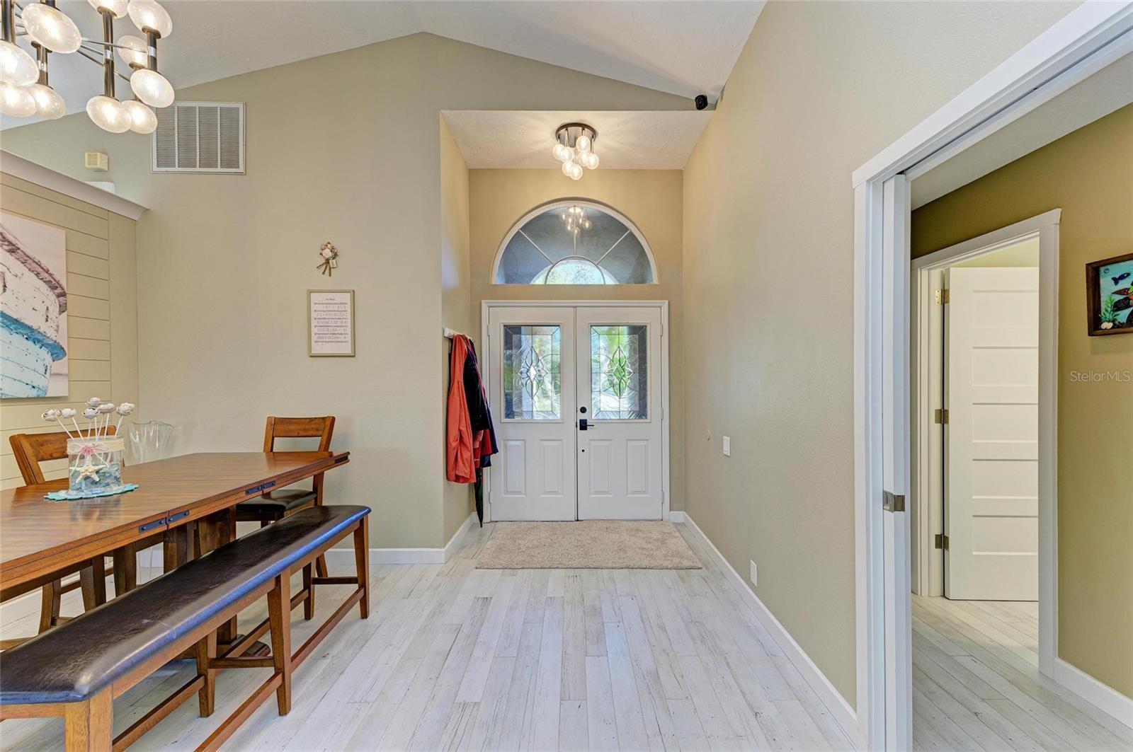 The open-concept living and kitchen area creates a seamless flow perfect for entertaining, offering direct views of the back screened porch, which fills the space with natural light and enhances the home’s warm, inviting feel. All appliances are included, and furniture is optional, making this home move-in ready and convenient. Additional highlights include automatic window shades in the living room, new A/C installed in 2024, a new roof (2020), and a garage epoxy coating completed in 2024/2025 for a clean, polished finish. The landscaping has been continually improved from 2020 to 2024, giving the exterior a fresh, well-maintained look.