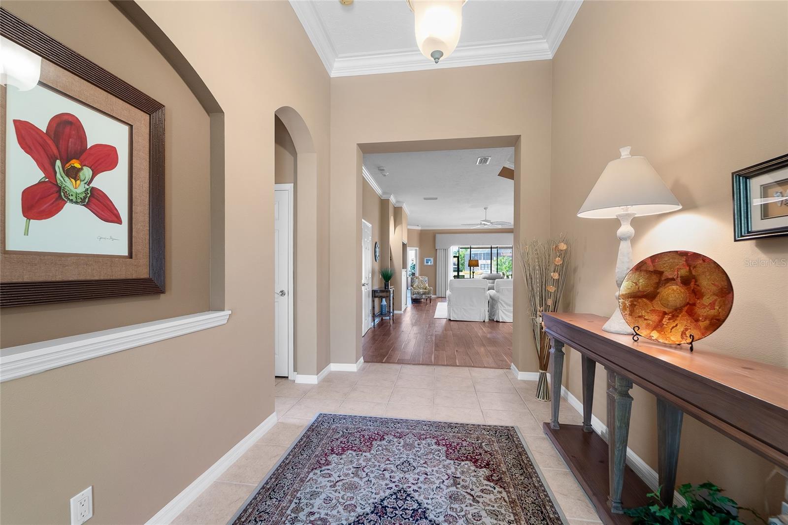 Welcome to the Vineyards of Silver Oak an impeccable community with 72 maintenance free homes developed by Gibraltar, a builder one of the best in Southwest Florida when this community was developed. Enjoy beautiful lakefront views from the minute you enter the home. Notice the custom features including volume trayed ceilings, wood floors, and custom mill work. The current homeowner has lovingly updated every room in the house including the chef’s kitchen with beautiful granite counters, glass tile backsplash and stainless-steel appliances. The breakfast area features lake views where you can enjoy your morning coffee watching the heron fish for breakfast outside your door. The star of the show is the view of the lake through the large 27-foot screened lanai where you can enjoy your favorite beverage as the Florida sunset paints the clouds. A separate formal dining area has plenty of room for family or neighbors to have an elegant meal or simply play cards. A built-in wine bar can be used as butler’s pantry or center for entertaining. The primary bedroom provides more lake views, custom millwork, and an upgraded ensuite spa-like bath where a dip in the garden tub can wash your cares away. Two closets provide plenty of storage. The split bedroom has lots of space for guests. The 3rd bedroom/office has double doors to easily become additional living/entertainment area. The garage is air conditioned and has a spotless polyaspartic (epoxy) floor. Silver Oak is located in the highly popular Palmer Ranch. The Legacy Bike Trail is adjacent to the community and allows you to ride, walk or jog to downtown Sarasota or Caspersen Beach in Venice. Plans are to ultimately link this to trails along the entire west coast of Florida. The home is few minutes from Costco, Target, Lowes and a plethora of other shopping.