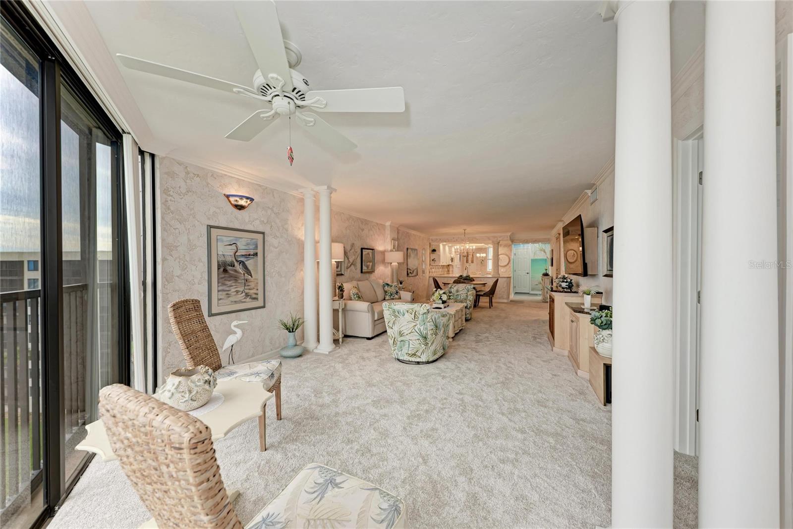 Positioned on the ninth floor and just three units from the Gulf side, this residence offers expansive, unobstructed Gulf views from the living room, kitchen, and both bedrooms. From the primary suite and living area, you can also enjoy a subtle eastern glimpse of the downtown Sarasota skyline. Sliding glass doors from the living room allow for a seamless connection to the outdoors and the natural coastal surroundings.