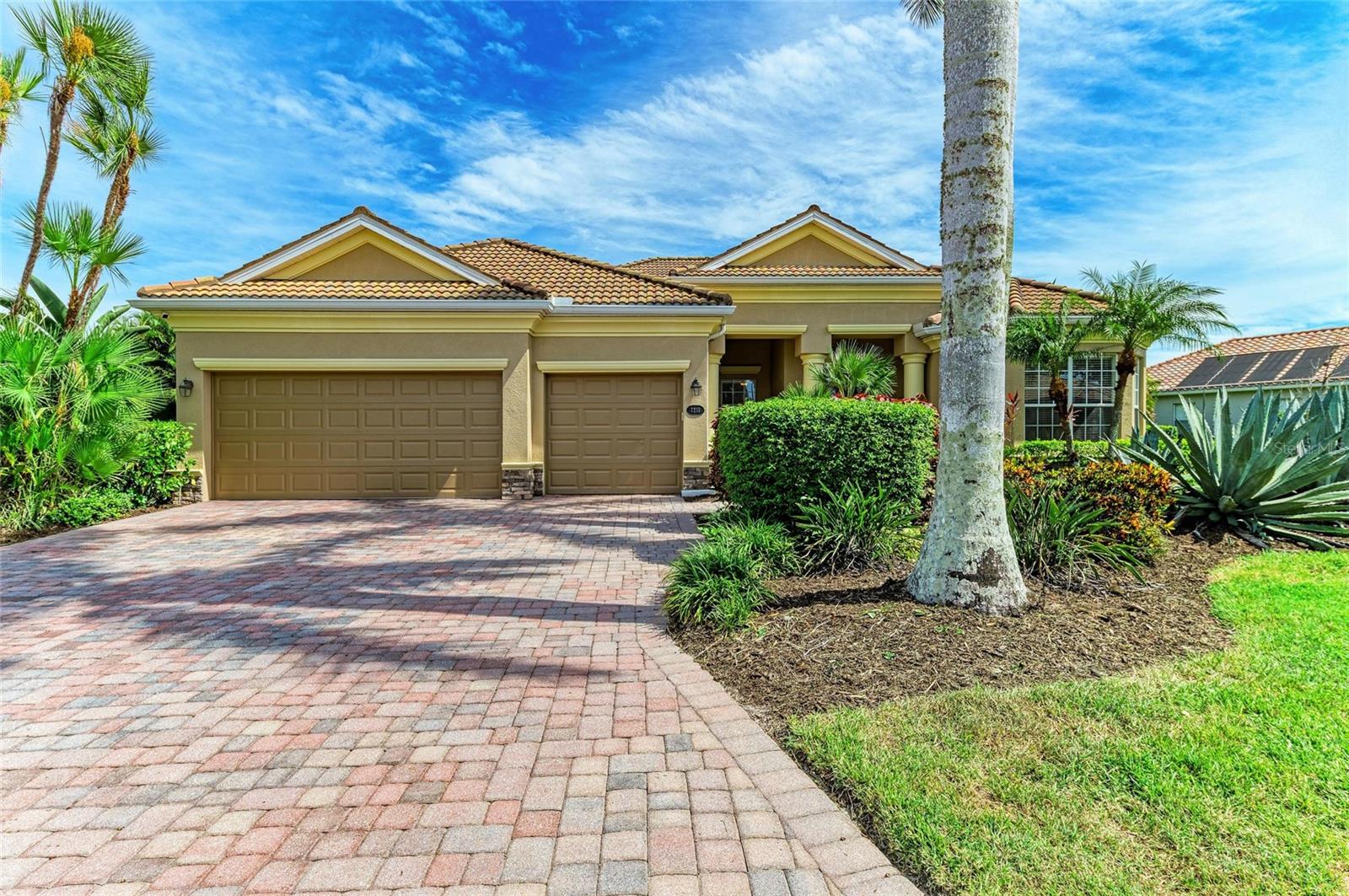 Step outside to your personal paradise — a large covered lanai, HEATED POOL AND SPA and expansive patio area ideal for entertaining or simply soaking in the sun. The PANORAMIC GOLF AND WATER VIEWS are truly unmatched, offering tee-to-green vistas of the first hole of the Tributary Course, along with added privacy on both sides.
